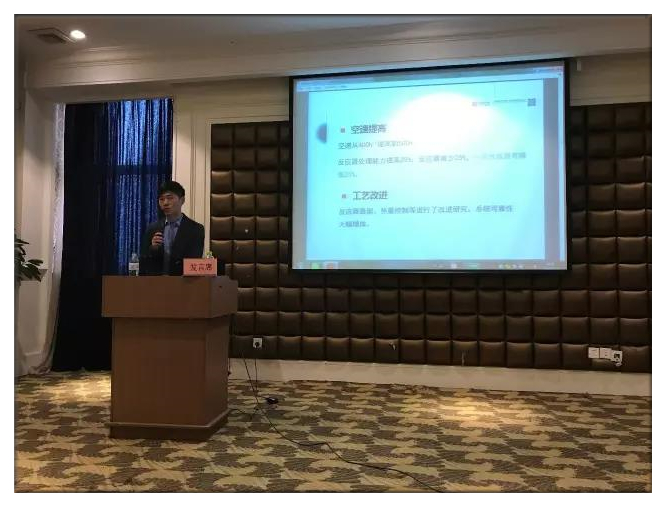 國(guó)能中電非電事業(yè)部總工程師納宏波博士在技術(shù)研討會(huì)會(huì)場(chǎng)就“炭基催化劑干法煙氣多污染物一體化脫除技術(shù)”與大家分享最近技術(shù)成果。