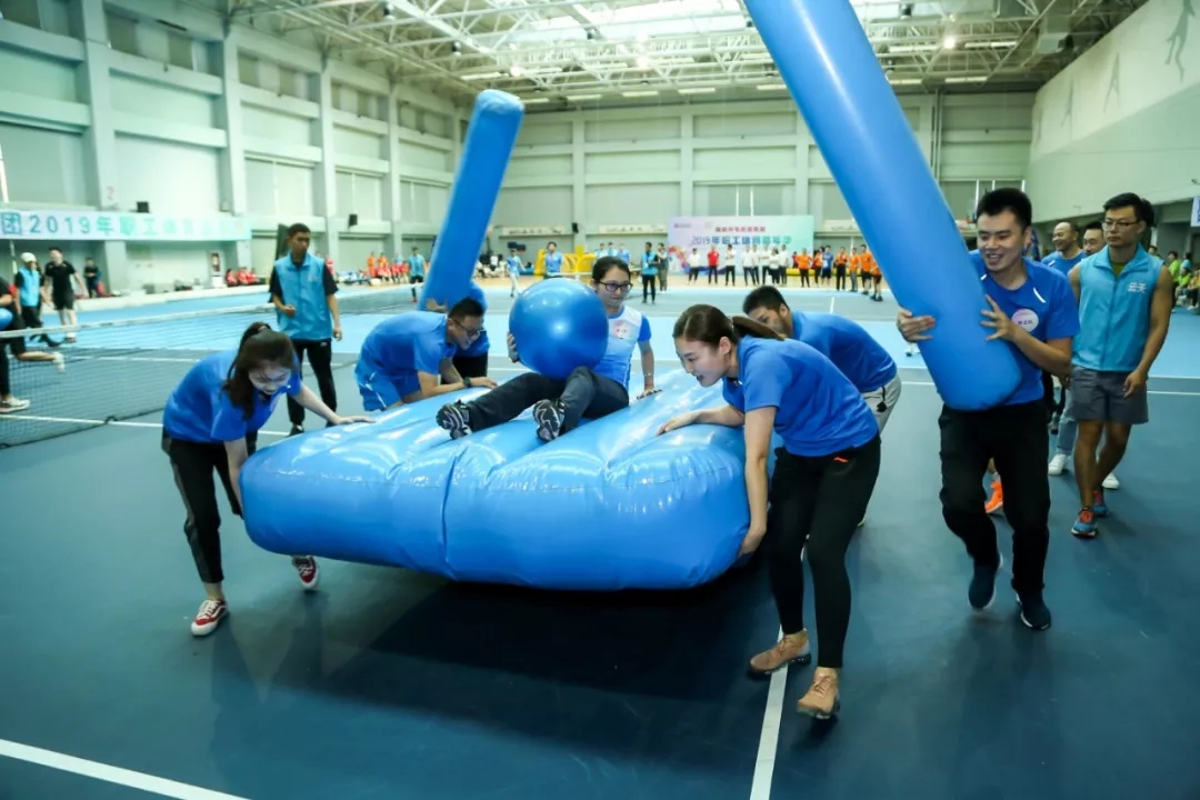 此次活動的項目經(jīng)過了精心設(shè)置,將在職工中普遍開展的羽毛球、籃球項目設(shè)置為專業(yè)競技項目,此外,綜合考慮職工身體素質(zhì)差異和群眾參與性,設(shè)置了輕量化、趣味性更強的團體競技項目七項:滾滾向前、旋轉(zhuǎn)飛碟、旱地龍舟、漢諾塔、動感顛球、超級障礙賽、拔河。