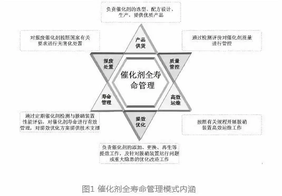 早期管理模式—主要應對環(huán)保達標排放以及技改工程限期治理要求,在早期大規(guī)模工程改造以及催化劑市場供不應求的形勢下,僅僅是單純粗放式的工程階段設備“買+ 裝”模式,缺乏對催化劑產(chǎn)品質(zhì)量的管控。現(xiàn)行管理模式—鑒于早期管理模式在工程投運后產(chǎn)生的一系列問題,近年來發(fā)電企業(yè)對催化劑質(zhì)量加強了管控,初步形成了“買+ 檢+ 裝+ 不定期檢”的模式,但由于缺乏連續(xù)性與整體性考慮,未能充分調(diào)動各方單位的參與度,責任單位往往在于發(fā)電企業(yè),相關(guān)工作開展較為被動,難以實現(xiàn)對催化劑全壽命周期的采購質(zhì)量、運行壽命以及脫硝運維成本的有效管控。